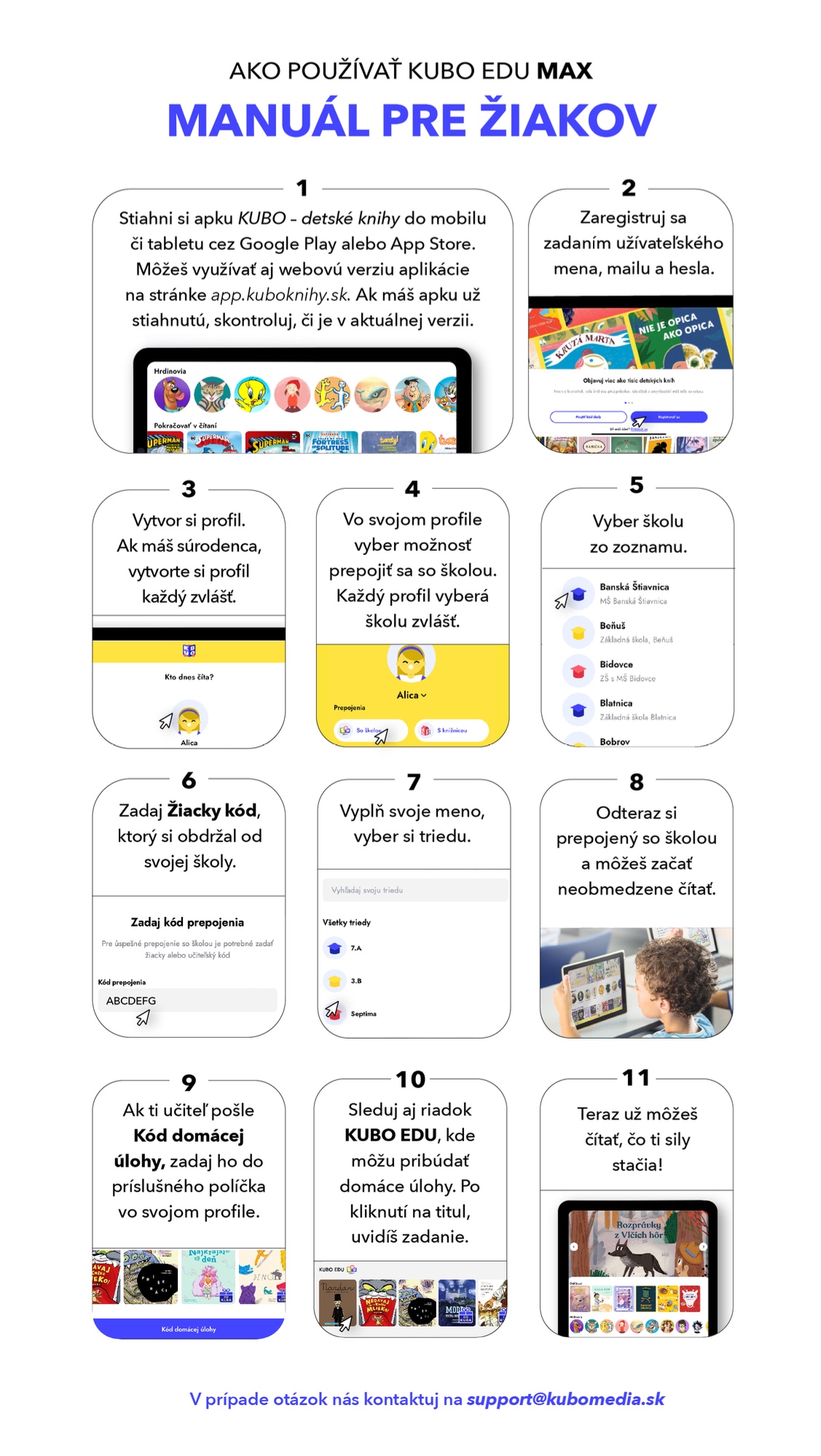 Ak by ste mali akékoľvek otázky ohľadom používania KUBO EDU, dajte nám, prosím, vedieť.